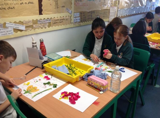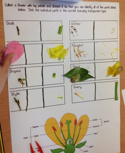 Biology has involved learning about life cycles. In week one we began by placing a basil cutting in water with some growth hormone and over the term measured the root growth each week which we then plotted onto a line graph to use some of our scientific skills; also looked at the life cycle of mammals, birds and amphibians and compared these. In week 2 we dissected flowers in order to identify each section for ourselves using magnifying glasses to really see the minute details and how these are used for reproduction.