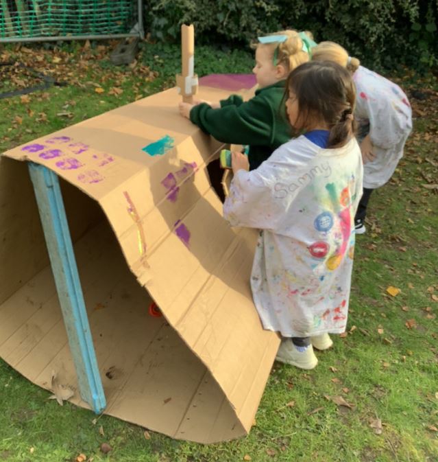 Term 2 began by learning about Diwali and Bonfire Night, they enjoyed creating their own Rangoli patterns and firework art! They then focused their learning around dinosaurs and had a lot of fun reading dinosaur books.